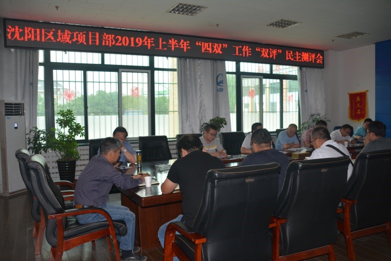 6月15日,合肥蔡田鋪項目黨支部召開2019年上半年“四雙”工作“雙評”民主測評會議。會議由項目副書記主持,項目部全體職工參加。(朱天娥)