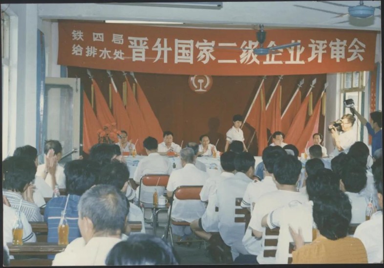 企業(yè)升級是國家“七五”期間的中心任務(wù),圍繞著“抓管理、上等級、全面提高素質(zhì)”的工作要求,全處廣泛宣傳發(fā)動。從加強(qiáng)基礎(chǔ)工作入手,成立領(lǐng)導(dǎo)小組和企管辦,圍繞安全、質(zhì)量、效益等重點(diǎn),廣泛開展標(biāo)準(zhǔn)化、計(jì)量、能耗、檔案、普法、全面質(zhì)量管理、班組建設(shè)等專項(xiàng)達(dá)標(biāo)升級。機(jī)關(guān)各部門、各單位對照“方針目標(biāo)任務(wù)展開表(類似于現(xiàn)在管理矩陣、責(zé)任清單)開展資料“補(bǔ)強(qiáng)”工作。1990年,給排水工程處通過鐵道部評審組考核驗(yàn)收,成為全局第一家晉升國家二級企業(yè)的單位,全處職工每人都晉升了一級標(biāo)準(zhǔn)工資,更重要的是剛剛成為獨(dú)立法人不久的給排水處整體管理理念和綜合素質(zhì)有了顯著提升。處相繼榮獲全國五一勞動獎狀、全國先進(jìn)施工企業(yè)等榮譽(yù),成為名噪一時的鐵四局“四小龍”之一,無論是企業(yè)管理、經(jīng)濟(jì)效益還是員工風(fēng)貌,都成為全局標(biāo)桿。