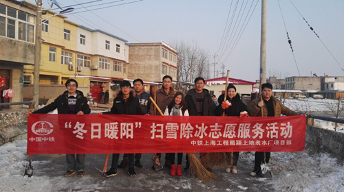 公司潁上縣城市地表水廠項目團支部組織開展“冬日暖陽”掃雪除冰志愿服務活動